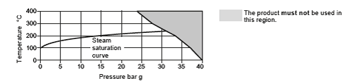 Pressure/temperature limits (ISO 6552) PN40