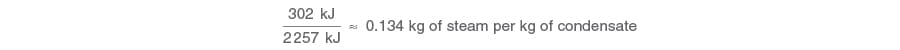 From each kilogram of condensate in this example, the proportion of flash steam generated therefore equals 13.4% of the initial mass of condensate.