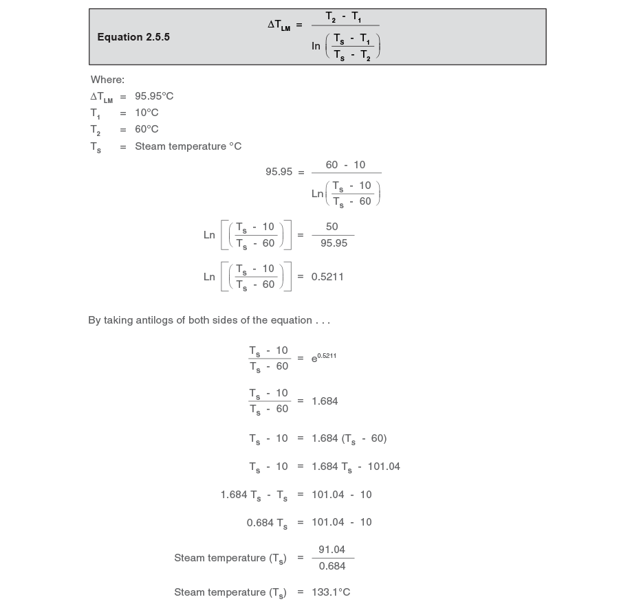 Now that the steam temperature has been determined for the oversized heat exchanger (using the LMTD equation [Equation 2.5.5]), it is now possible to find its TDC, using Equation 13.2.2.