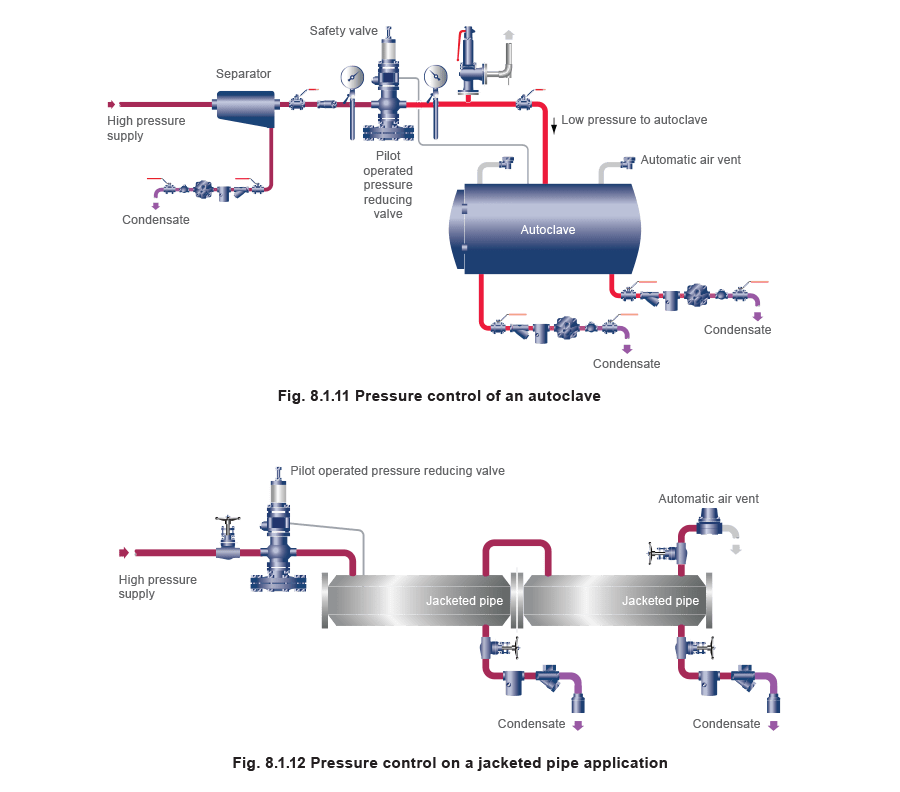 A system which requires accurate and consistent pressure control, and installations which have variable and high flowrates and/or variable or high upstream pressure, including autoclaves, highly rated plant such as large heat exchangers and calorifiers, and main plant pressure reducing stations.