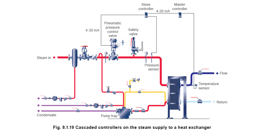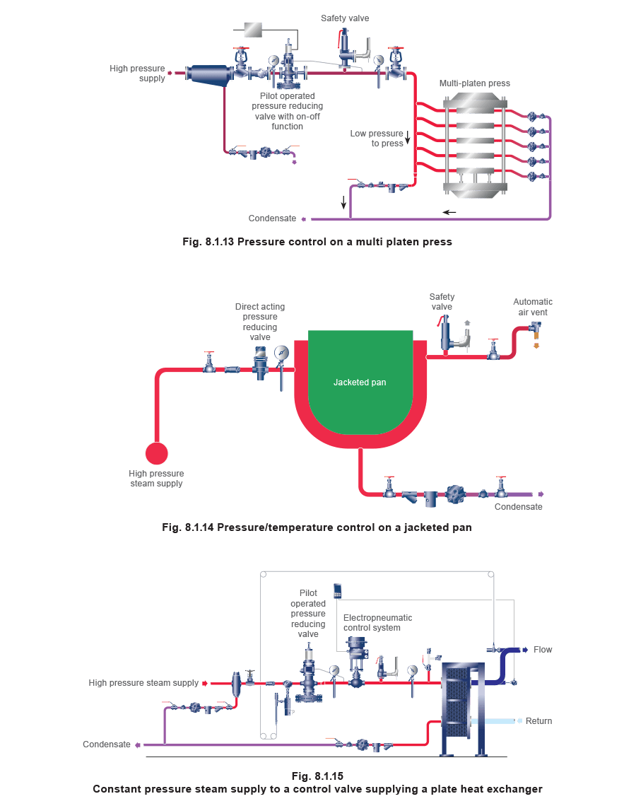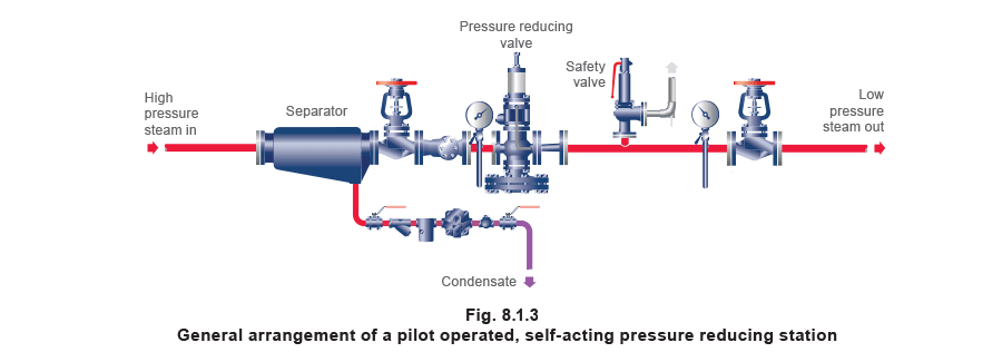 The system shown in Figure 8.1.10 works by having the pressure controller set at the required downstream pressure and operating the steam pressure control valve accordingly.