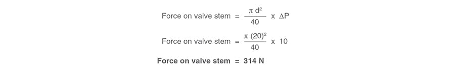 It can be seen from Example 7.1.1 that the force required to shut the valve increases with the square of the diameter. There is a limited amount of force available from the actuator, which is why the maximum pressure against which a valve is able to shut decreases with an increase in valve size.