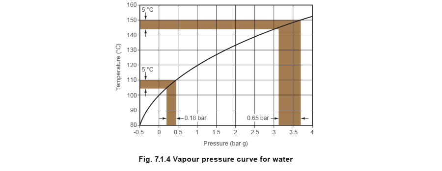 A vapour tension system follows a unique pressure / temperature saturation curve for the fluid contained by the system. All fluids have a relationship between pressure and their boiling temperature. The result can be plotted by a saturation curve. The saturation curve for water can be seen in Figure 7.1.4.