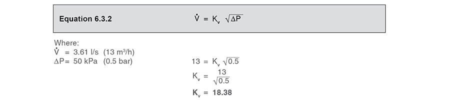 10 m³/h of water is pumped around a circuit; determine the pressure drop across a valve with a Kv of 16 by using Equation 6.3.2: