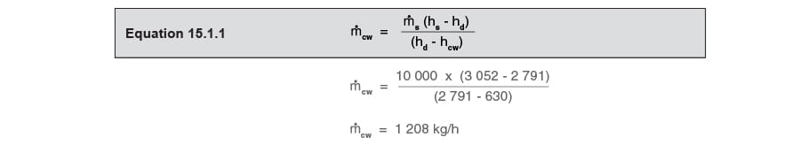 10 000 + 1 208 Had the requirement been for 10 000 kg/h of the desuperheated steam, the initial superheated steam flowrate can be determined using a simple proportional method: