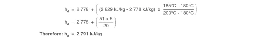 Interpolating for enthalpy at 10 bar a and 185°C: