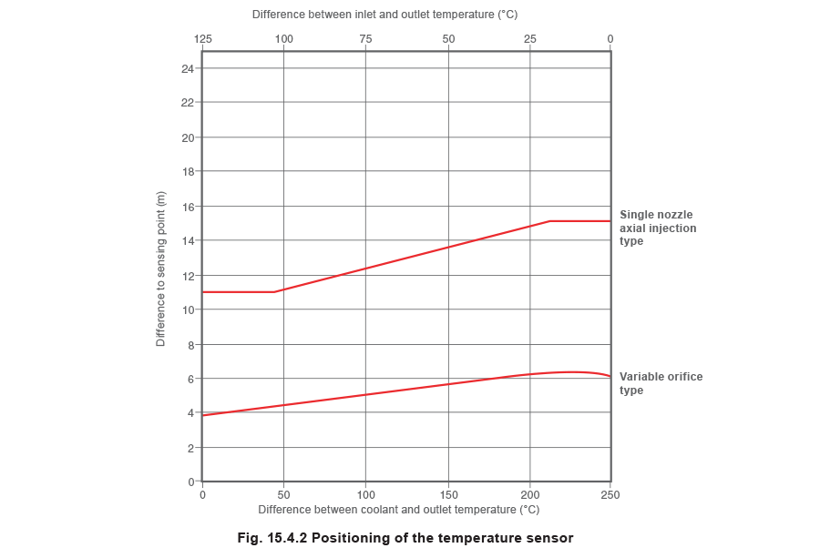 The minimum distance from the point of water injection to the temperature sensing point is critical: