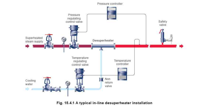A generalised installation of an in-line desuperheater is shown in Figure 15.4.1.