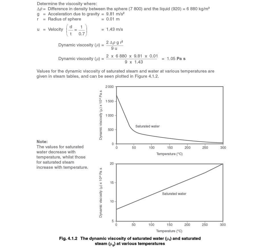 1. The result of Equation 4.1.1 is termed the absolute or dynamic viscosity of the fluid and is measured in pascal seconds. Dynamic viscosity is also expressed as ‘viscous force.’