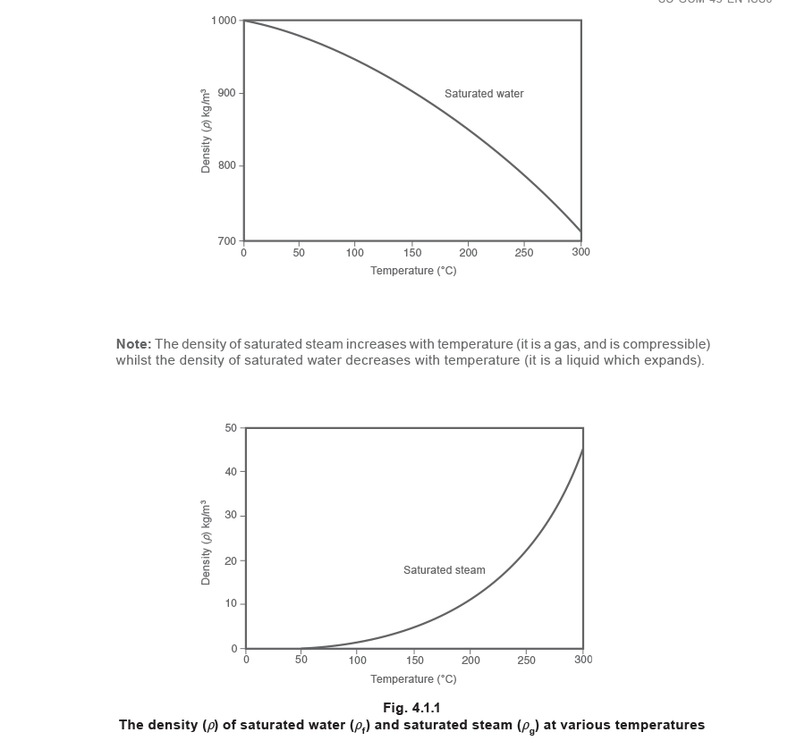The density of both saturated water and saturated steam vary with temperature. This is illustrated in Figure 4.1.1.