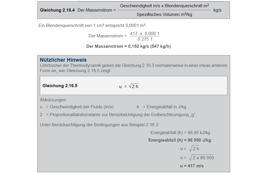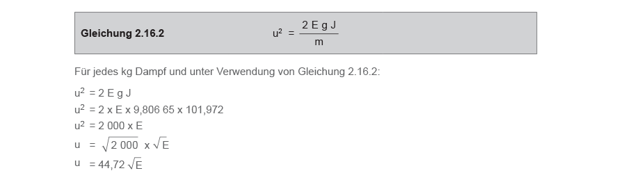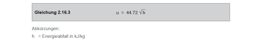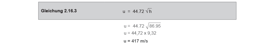 Der Energieabfall in Beispiel 2.16.1 betrug 86,95 kJ/kg, demzufolge kann die Geschwindigkeit unter Verwendung von Gleichung 2.16.3 wie folgt berechnet werden: