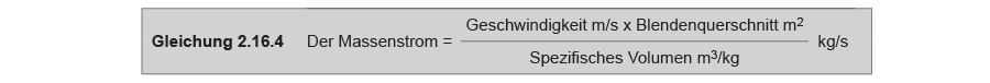Aus der Gleichung 2.16.4 ist ersichtlich, dass unter diesen Bedingungen, wenn Geschwindigkeit und spezifisches Volumen konstant sind, der Massenstrom durch die Blende direkt proportional zur Blendenfläche ist.