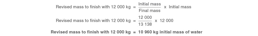 Alternatively, if the process requirement had been to finish with a mass of 12 000 kg, the mass of water at the beginning of the process would be: