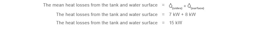 The heat losses from the sides of the tank and the water surface are the same as previously calculated, that is 24 kg/h.