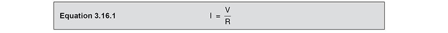 The unit of resistance is the ohm (given the symbol Ω) and Ohm’s law relates current, voltage and resistance, see Equation 3.16.1: