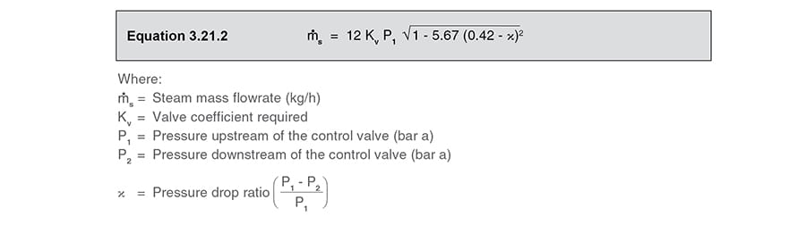 An appropriate valve can now be selected either from the manufacturer’s sizing charts or using the saturated steam sizing chart shown in Figure 3.22.9.